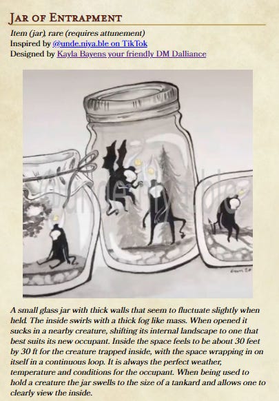 Now I can’t be the only one who thinks being about to have a pocket fiend or elemental is actually super helpful. Probably mostly because I can just picture a trapped annoyed fiend just being sarcastic all over the place at inopportune moments. But it could come in clutch if you see yourself going against a strange being that might be good to hold onto in order to toss and run at a stronger monster later on. Can you imagine a pissed-off fire elemental battling an ice dragon?